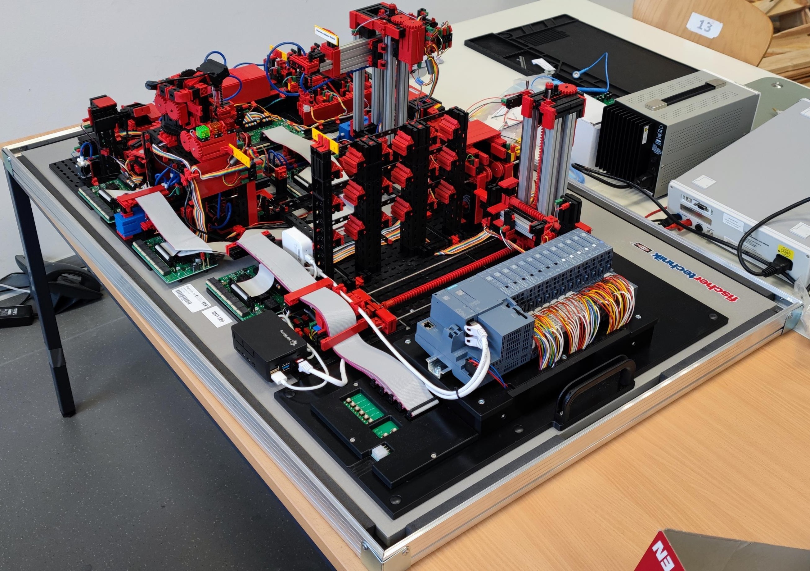 Das E-Technik-Labor bietet eine Reihe an Labor- und Arbeitsplätzen für Versuche, Praktika, Abschlussarbeiten und Forschungsprojekte. Der Schwerpunkt liegt hier auf der klassischen Elektrotechnik und Messtechnik. Für Versuche steht u. a. auch eine Lernfabrik der Industrie 4.0 mit Cloud-Anbindung und SPS zur Verfügung, an der Studierende „spielerisch“ die Praxis erlernen können.